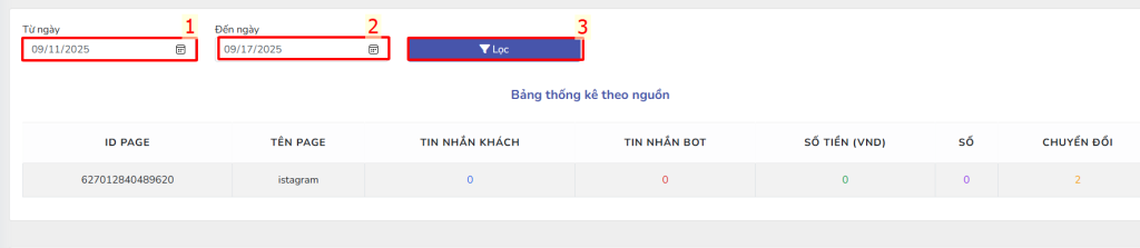 • Tin nhắn khách: Tổng số tin nhắn khách gửi từ page đó.
