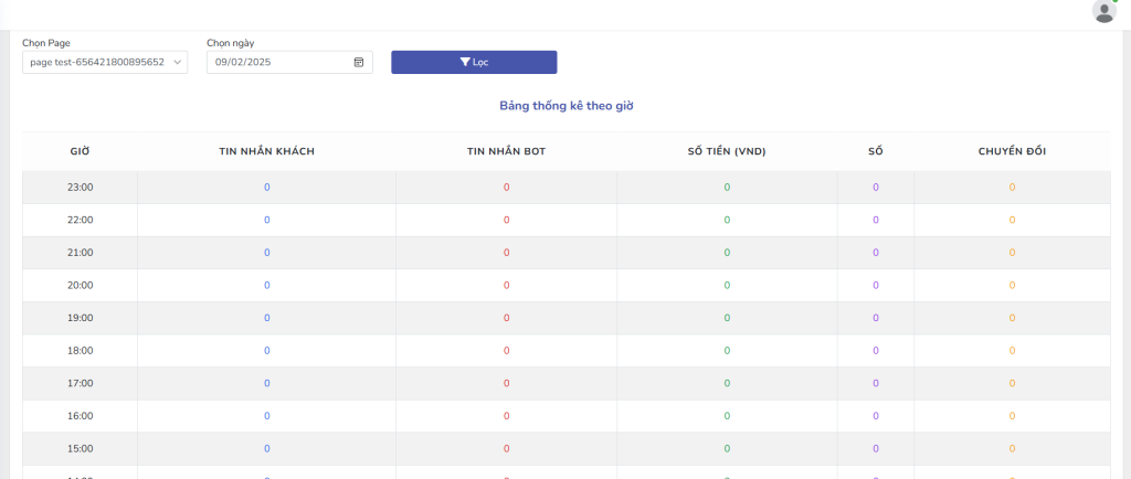 • Tin nhắn bot: Số tin nhắn bot phản hồi trong khung giờ đó.