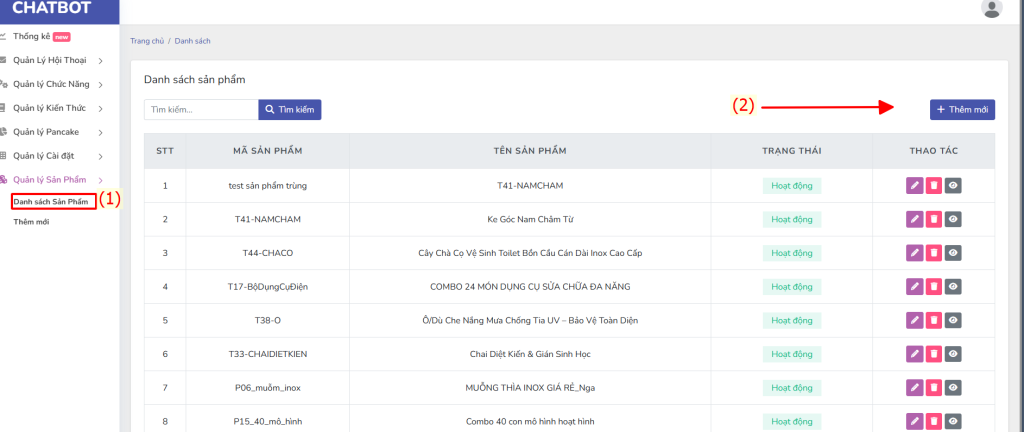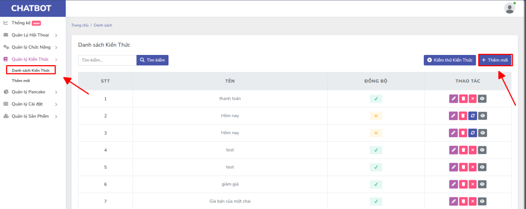 Đầu tiên truy cập vào mục Danh sách kiến thức. Chọn thêm mới kiến thức
