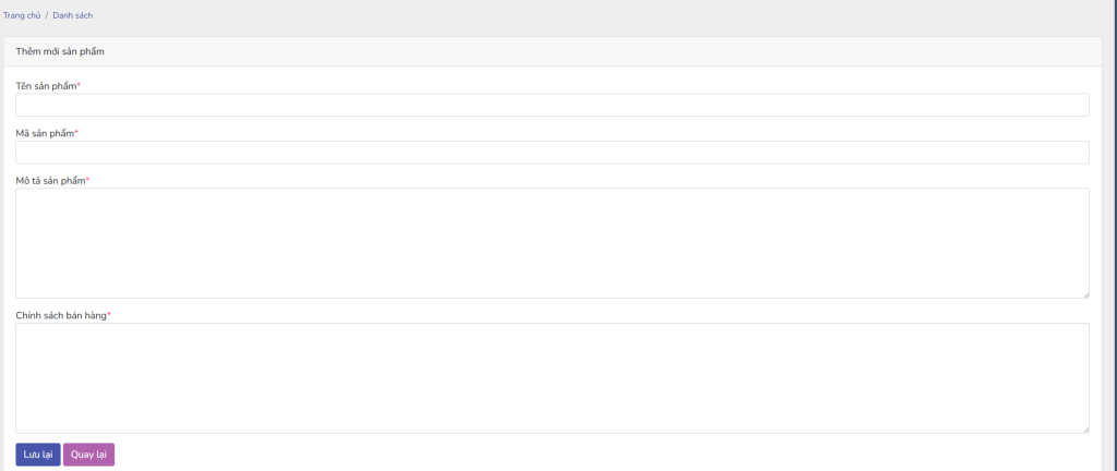 - Truy cập vào trang quản lý sản phẩm. Chọn thêm mới để nhập mới sản phẩm từ thông tin trong ô ngữ cảnh chung tương ứng từng phần -> Ấn nút lưu lại