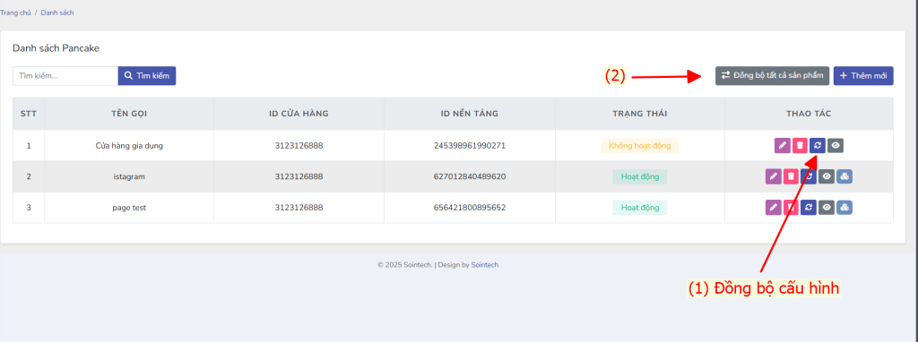 Để đồng bộ cấu hình và sản phẩm từ pancake người dùng thao tác như hình dưới