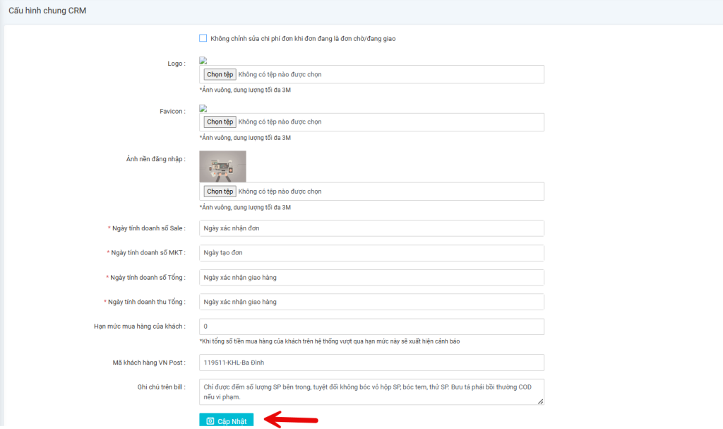 • Người sử dụng click vào “Chọn tệp” để tải lên ảnh sau đó thực hiện thao tác “Cập nhật” để cập nhật cấu hình chung.