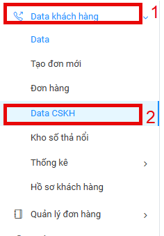 1. Đăng nhập vào phần mềm. Từ trang chủ của phần mềm, người sử dụng chọn “Data khách hàng”