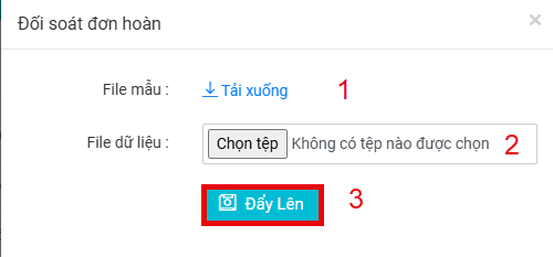 • Upload file excel chứa danh sách các đơn chưa được đối soát: