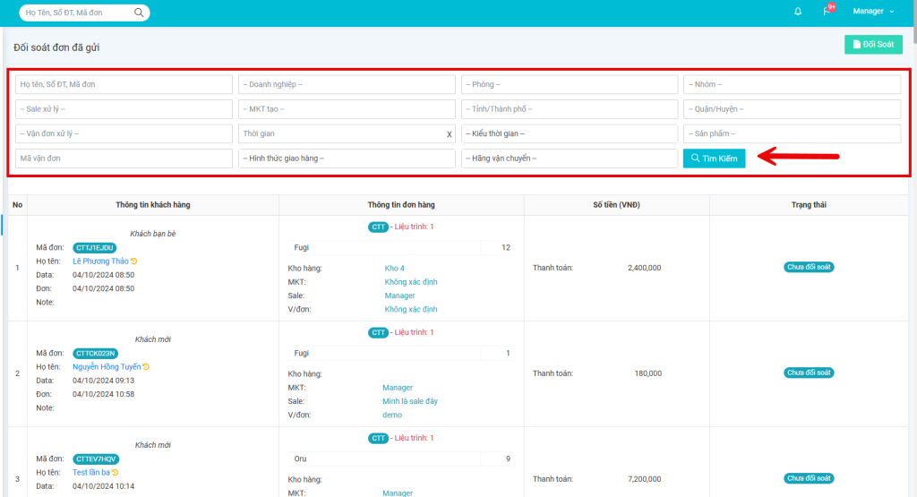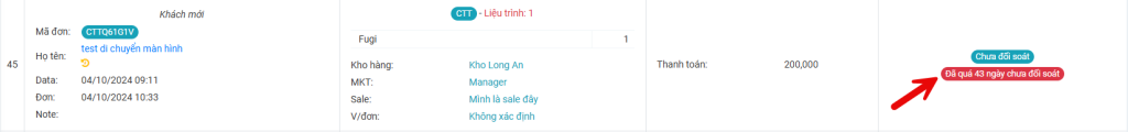Trong danh sách đối soát, đơn nào quá 3 ngày mà ko được đối soát thì sẽ cảnh báo đỏ lên.