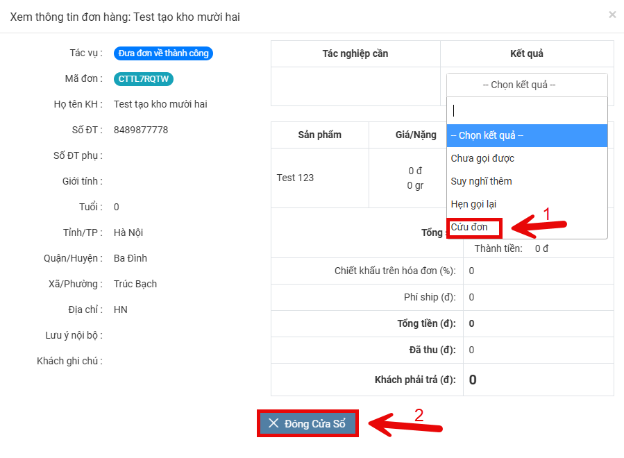 - Nhân viên kinh doanh thao tác gọi lại để xử lý đơn hoàn, khách hàng xác nhận vẫn mua hàng thì nhân viên kinh doanh chọn trạng thái “Cứu đơn”. Data chuyển về “Đơn xác nhận”. Chi tiết thao tác :