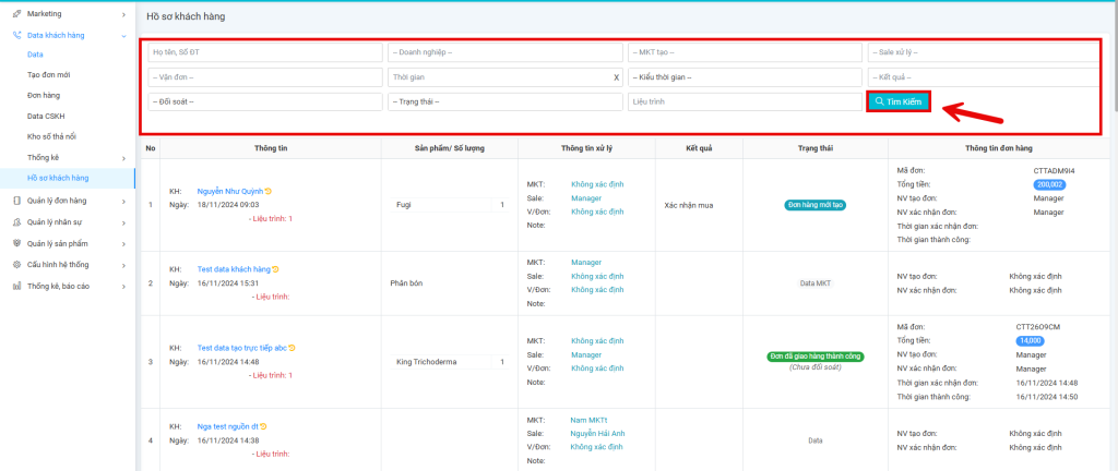 • Nếu người sử dụng muốn lọc hồ sơ khách hàng theo điều kiện thì click vào “Tìm” để lọc theo các điều kiện như hình bên dưới.