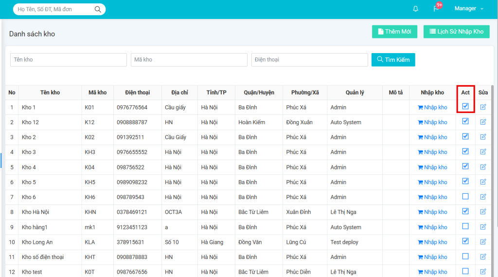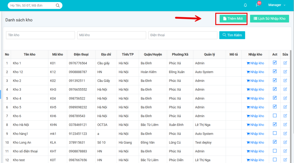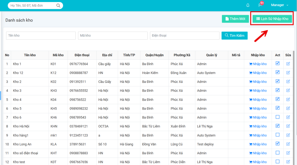 • Để xem "lịch sử nhập kho hàng" người dùng nhấp như hình dưới đây: