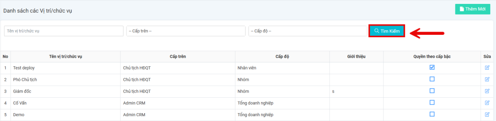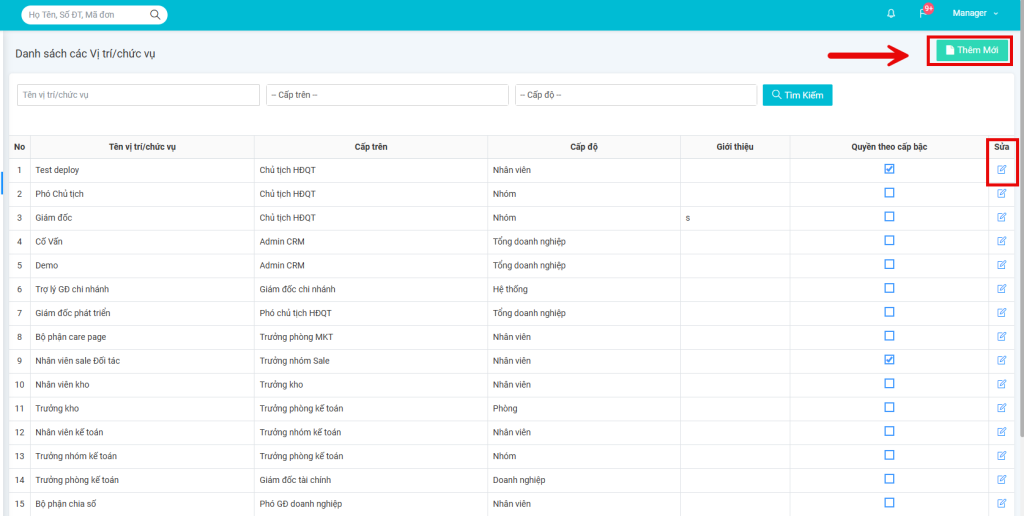 • Click “Thêm mới nhóm” ở góc bên phải hoặc Sửa vị trí/ chức vụ.